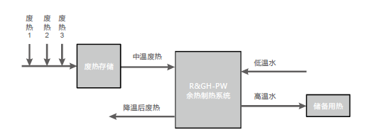 R&GH-PW系统运行描述:是以电能作为驱动,提取余热水热量,将自来水源的低温水加热满足生产