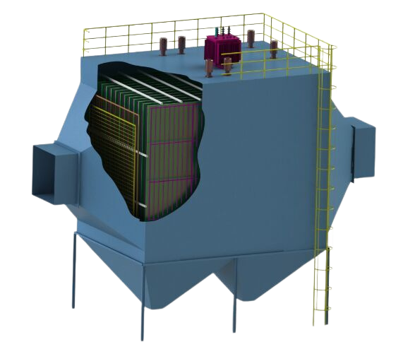 两极系统均有正振打装置,当振打锤周期性的敲打两极装置时,粘附在其上的粉尘被抖落,落入下部灰斗经排灰装置排出机外。被净化了的废气由出口经烟囱排入大气中,此时完成了烟气净化过程,是净化工业废气的理想设备。